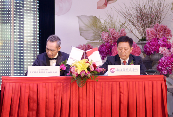 安正時尚集團董事長鄭安政與上海證券交易所監(jiān)事長潘學(xué)先簽訂協(xié)議